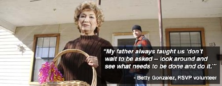 RSVP connects volunteers age 55 and better with service opportunities in their communities that match their skills and availability. From building houses to immunizing children, from enhancing the capacity of non-profit organizations to improving and protecting the environment, RSVP volunteers put their unique talents to work to make a difference.